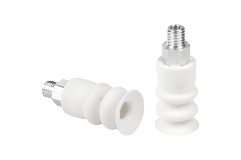 - Круглая, сильфонная присоска с 2,5 гофра для перемещения чрезвычайно чувствительных заготовок (оптимальный демпфирующий эффект)