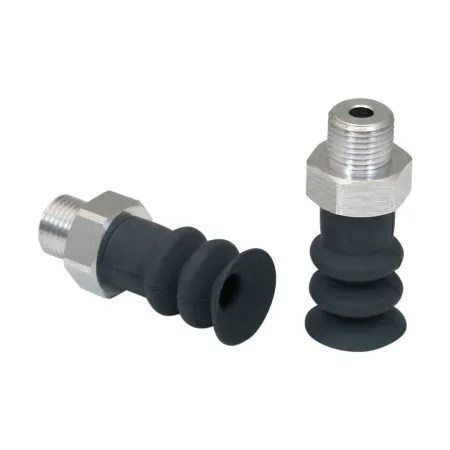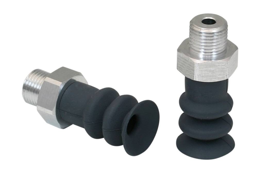 - Круглая, сильфонная присоска с 2,5 гофра для перемещения чрезвычайно чувствительных заготовок (оптимальный демпфирующий эффект)