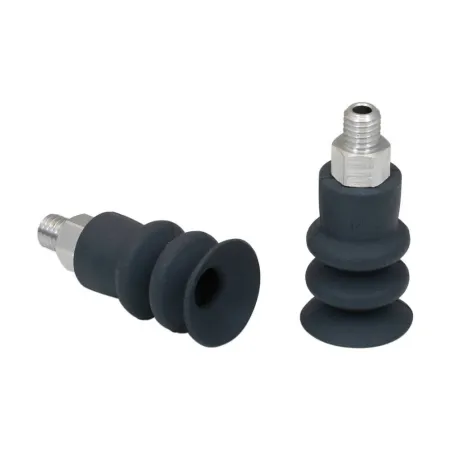 - Круглая, сильфонная присоска с 2,5 гофра для перемещения чрезвычайно чувствительных заготовок (оптимальный демпфирующий эффект)