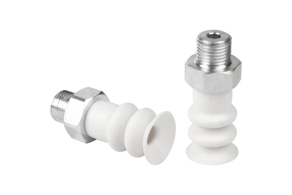 - Круглая, сильфонная присоска с 2,5 гофра для перемещения чрезвычайно чувствительных заготовок (оптимальный демпфирующий эффект)