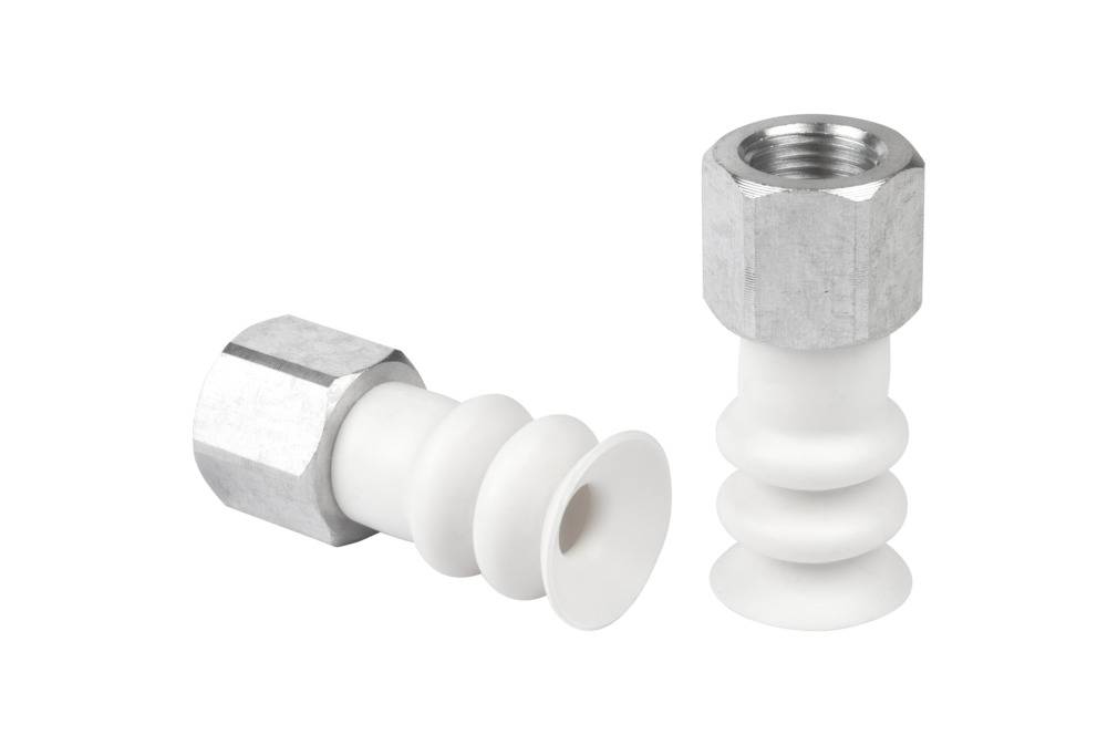 - Круглая, сильфонная присоска с 2,5 гофра для перемещения чрезвычайно чувствительных заготовок (оптимальный демпфирующий эффект)