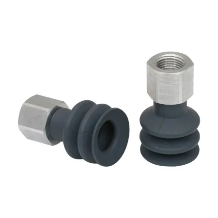- Круглая, сильфонная присоска с 2,5 гофра для перемещения чрезвычайно чувствительных заготовок (оптимальный демпфирующий эффект)