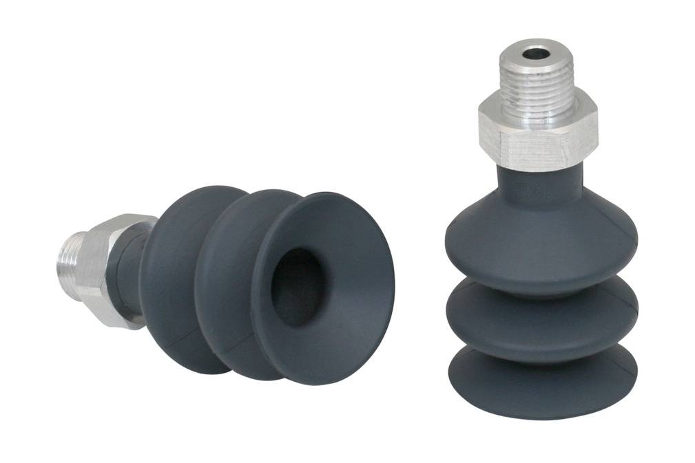 - Круглая, сильфонная присоска с 2,5 гофра для перемещения чрезвычайно чувствительных заготовок (оптимальный демпфирующий эффект)