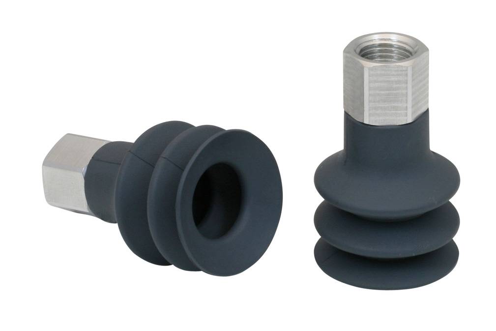 - Круглая, сильфонная присоска с 2,5 гофра для перемещения чрезвычайно чувствительных заготовок (оптимальный демпфирующий эффект)