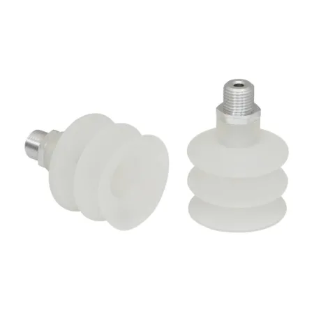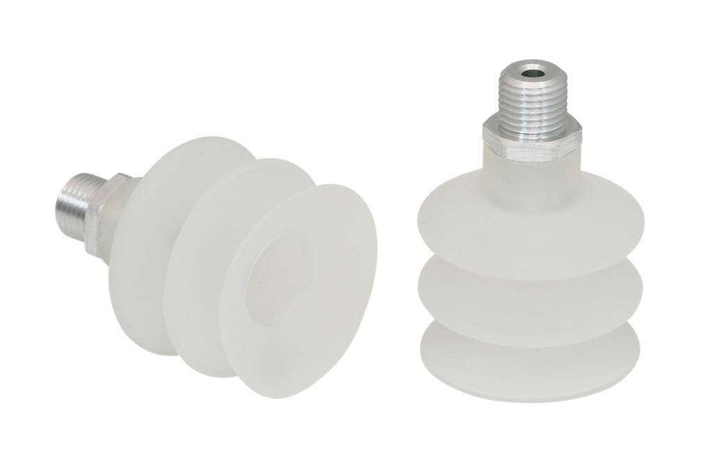 - Круглая, сильфонная присоска с 2,5 гофра для перемещения чрезвычайно чувствительных заготовок (оптимальный демпфирующий эффект)