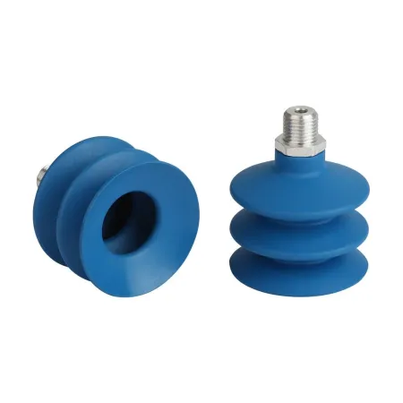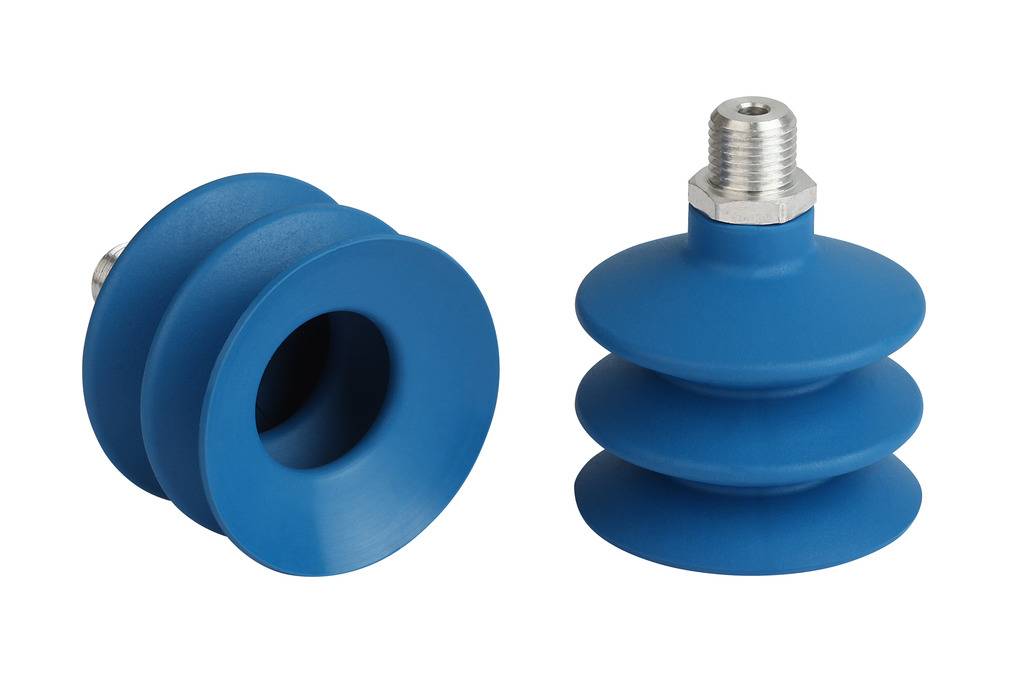 - Круглая, сильфонная присоска с 2,5 гофра для перемещения чрезвычайно чувствительных заготовок (оптимальный демпфирующий эффект)