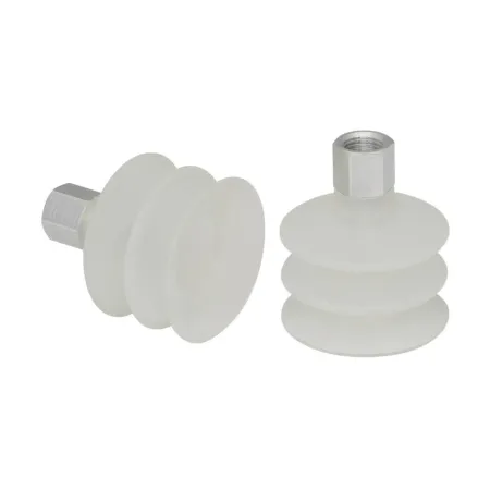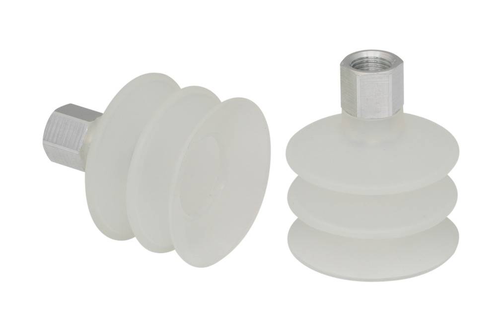 - Круглая, сильфонная присоска с 2,5 гофра для перемещения чрезвычайно чувствительных заготовок (оптимальный демпфирующий эффект)
