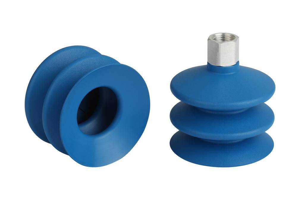- Круглая, сильфонная присоска с 2,5 гофра для перемещения чрезвычайно чувствительных заготовок (оптимальный демпфирующий эффект)
