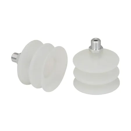 - Круглая, сильфонная присоска с 2,5 гофра для перемещения чрезвычайно чувствительных заготовок (оптимальный демпфирующий эффект)