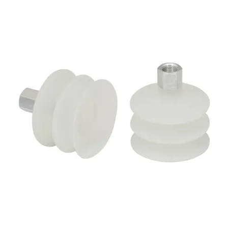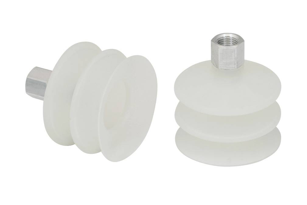 - Круглая, сильфонная присоска с 2,5 гофра для перемещения чрезвычайно чувствительных заготовок (оптимальный демпфирующий эффект)