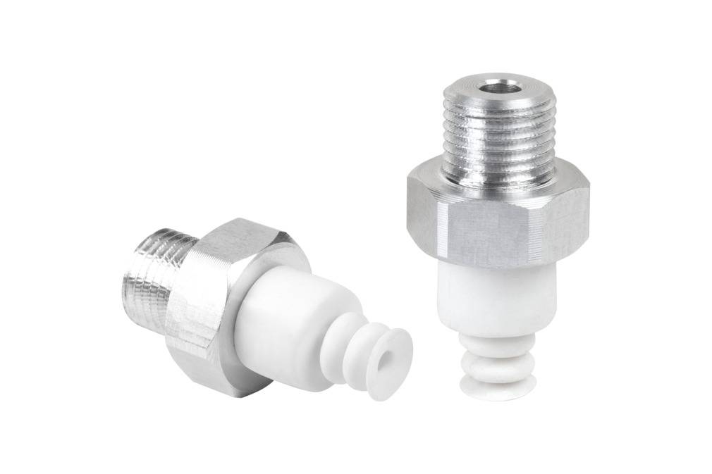 - Круглая, сильфонная присоска с 2,5 гофра для перемещения чрезвычайно чувствительных заготовок (оптимальный демпфирующий эффект)