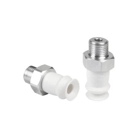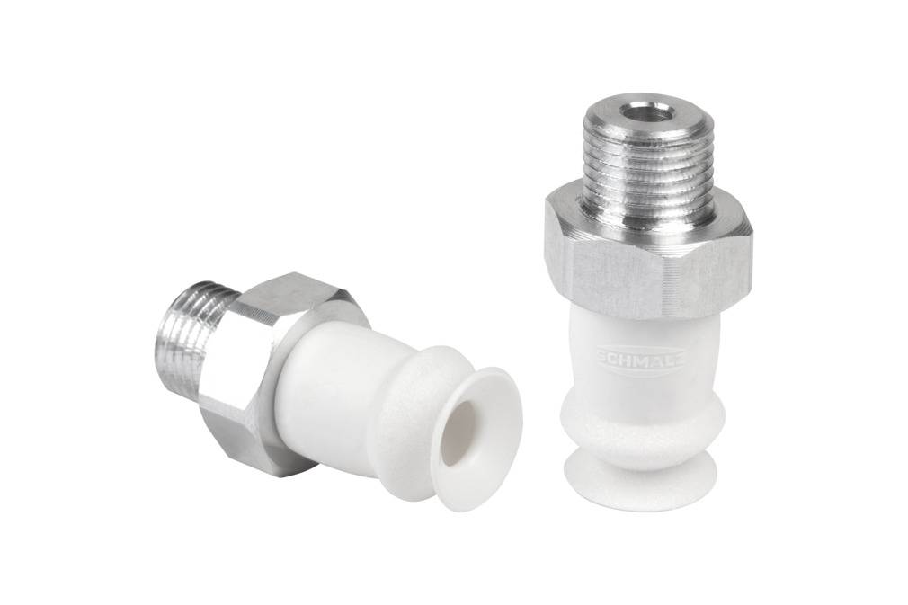 - Круглая сильфонная присоска с 1,5 гофра, регулировкой высоты и демпфирующим эффектом для перемещения хрупких заготовок