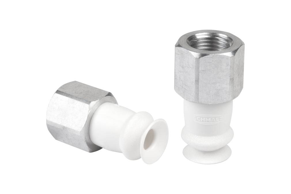 - Круглая сильфонная присоска с 1,5 гофра, регулировкой высоты и демпфирующим эффектом для перемещения хрупких заготовок
