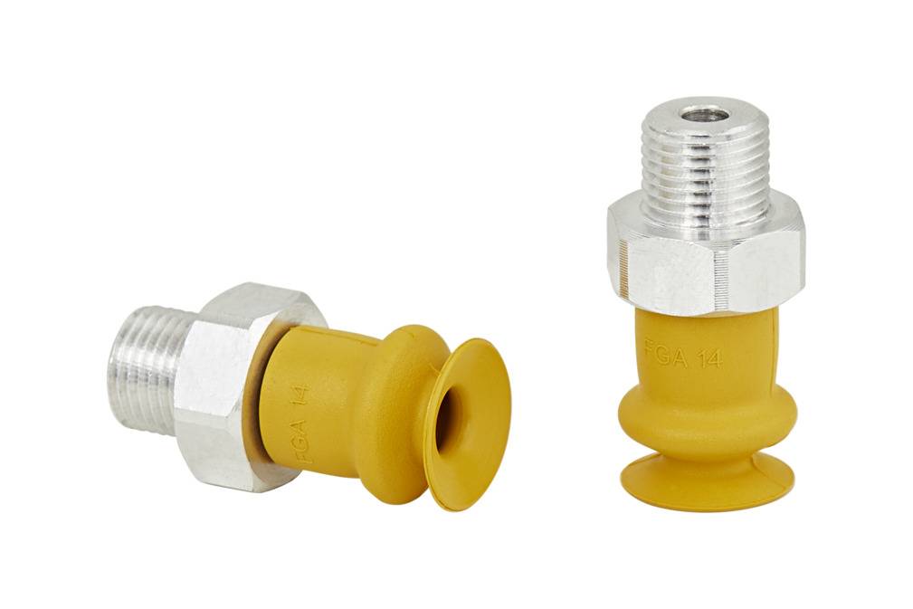 - Прочная износостойкая присоска FSGA (3) с одиночной уплотнительной кромкой состоящая из присоски FGA (2) с 1,5 гофра и соединительного ниппеля (1)
