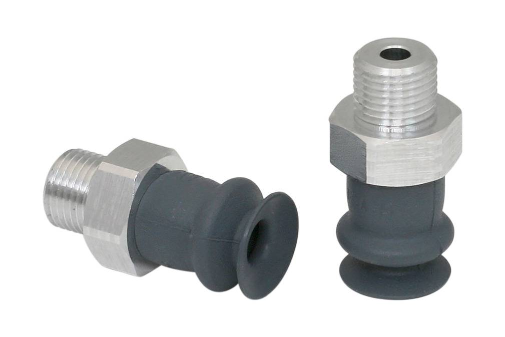 - Круглая, сильфонная присоска с 1,5 гофра для перемещения чрезвычайно чувствительных заготовок (оптимальный демпфирующий эффект благодаря гофру и гладкой уплотнительной кромке)