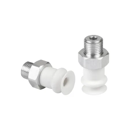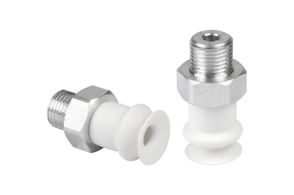 - Круглая сильфонная присоска с 1,5 гофра, регулировкой высоты и демпфирующим эффектом для перемещения хрупких заготовок