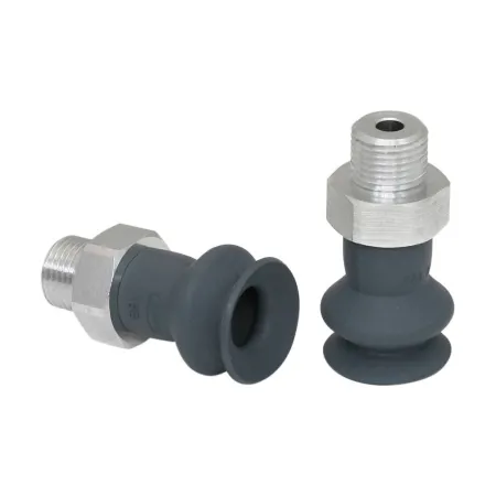 - Круглая, сильфонная присоска с 1,5 гофра для перемещения чрезвычайно чувствительных заготовок (оптимальный демпфирующий эффект благодаря гофру и гладкой уплотнительной кромке)