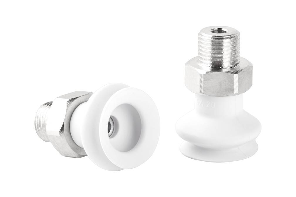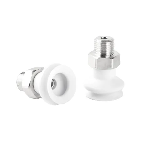 - Круглая сильфонная присоска с 1,5 гофра, регулировкой высоты и демпфирующим эффектом для перемещения хрупких заготовок
