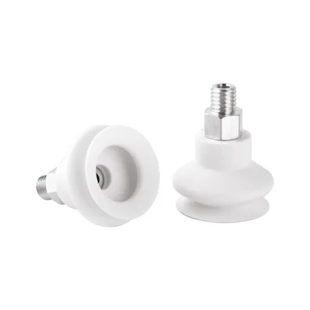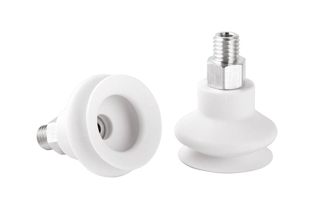 - Круглая сильфонная присоска с 1,5 гофра, регулировкой высоты и демпфирующим эффектом для перемещения хрупких заготовок