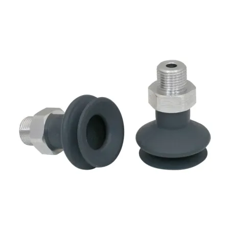 - Круглая, сильфонная присоска с 1,5 гофра для перемещения чрезвычайно чувствительных заготовок (оптимальный демпфирующий эффект благодаря гофру и гладкой уплотнительной кромке)