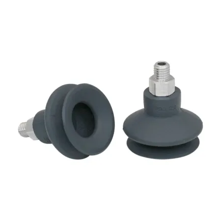 - Круглая, сильфонная присоска с 1,5 гофра для перемещения чрезвычайно чувствительных заготовок (оптимальный демпфирующий эффект благодаря гофру и гладкой уплотнительной кромке)
