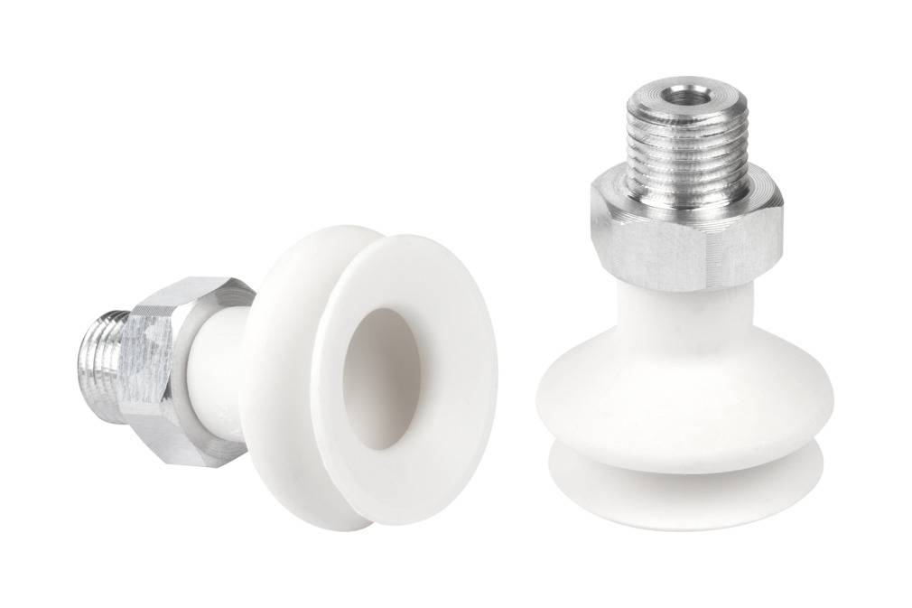 - Круглая сильфонная присоска с 1,5 гофра, регулировкой высоты и демпфирующим эффектом для перемещения хрупких заготовок