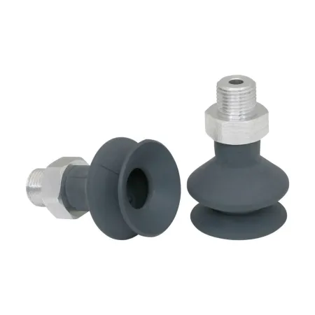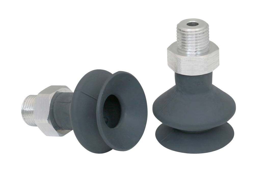 - Круглая, сильфонная присоска с 1,5 гофра для перемещения чрезвычайно чувствительных заготовок (оптимальный демпфирующий эффект благодаря гофру и гладкой уплотнительной кромке)