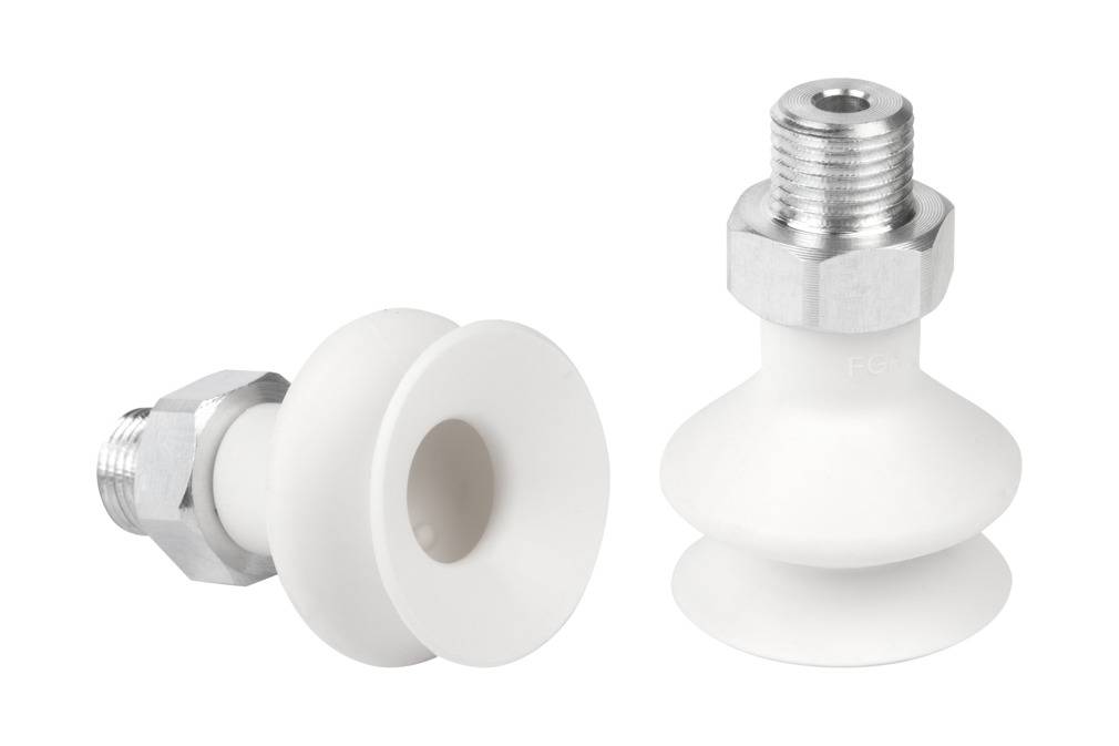 - Круглая сильфонная присоска с 1,5 гофра, регулировкой высоты и демпфирующим эффектом для перемещения хрупких заготовок