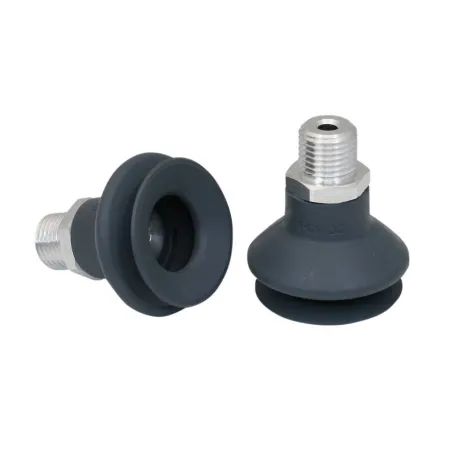 - Круглая, сильфонная присоска с 1,5 гофра для перемещения чрезвычайно чувствительных заготовок (оптимальный демпфирующий эффект благодаря гофру и гладкой уплотнительной кромке)