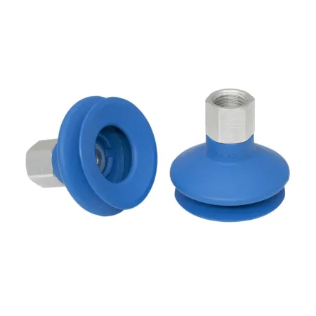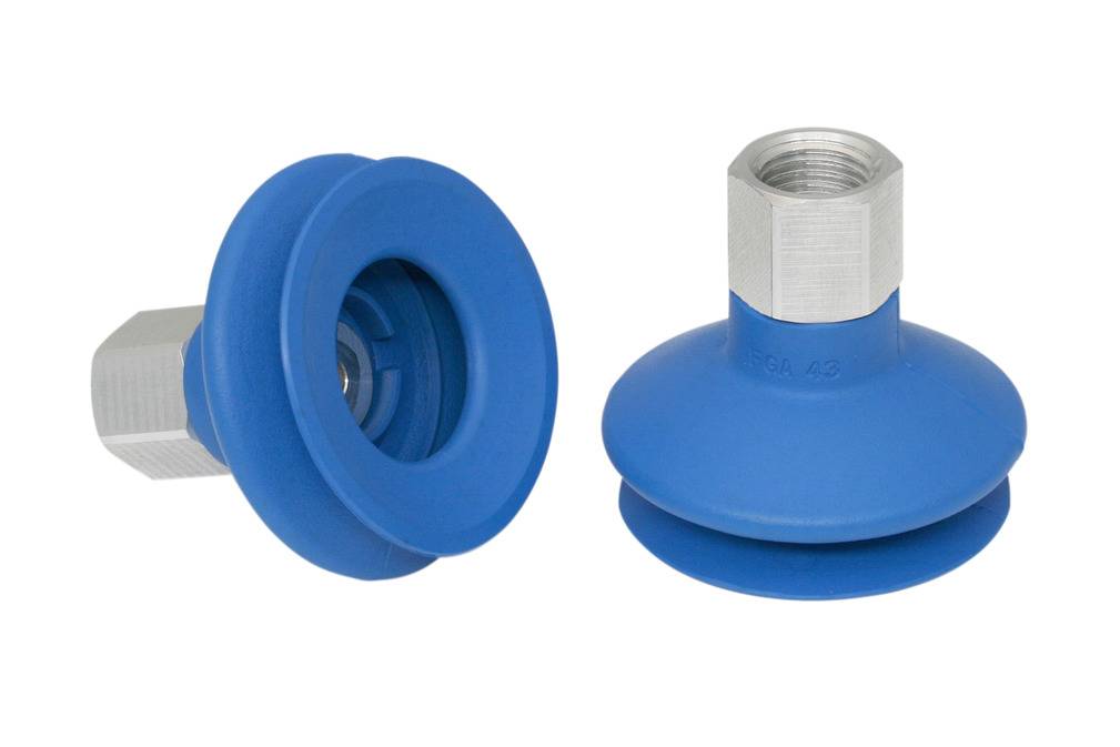 - Круглая, сильфонная присоска с 1,5 гофра для перемещения чрезвычайно чувствительных заготовок (оптимальный демпфирующий эффект благодаря гофру и гладкой уплотнительной кромке)