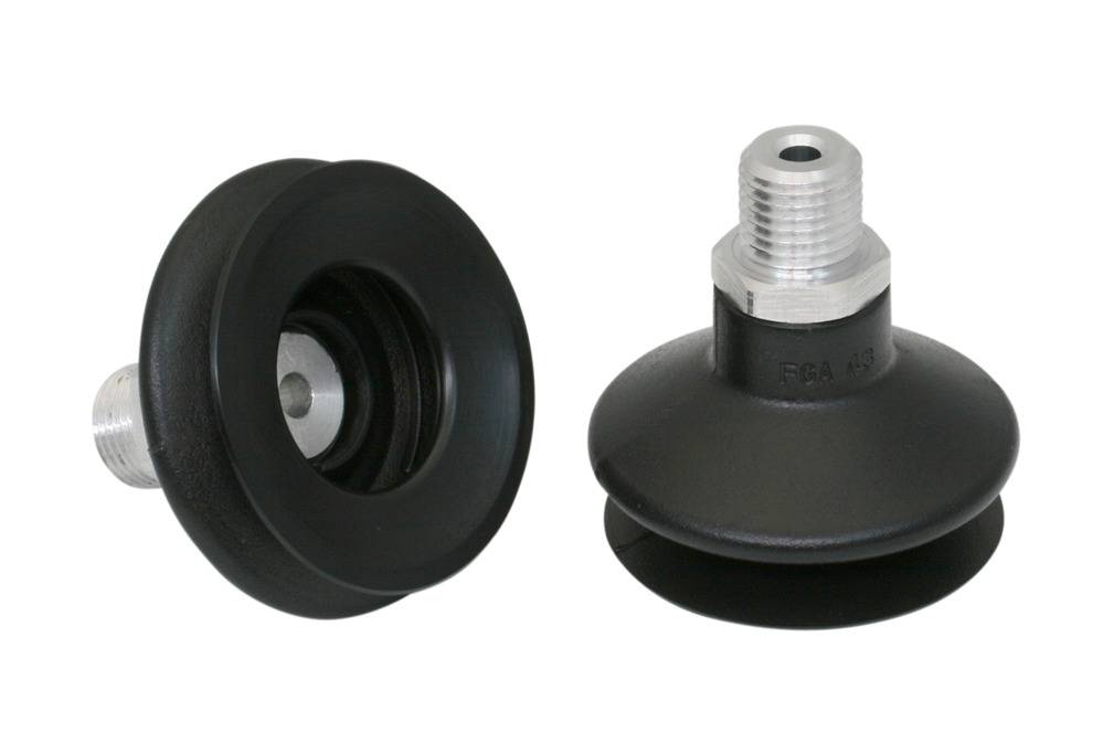 - Круглая, сильфонная присоска с 1,5 гофра для перемещения чрезвычайно чувствительных заготовок (оптимальный демпфирующий эффект благодаря гофру и гладкой уплотнительной кромке)