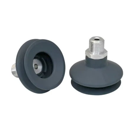 - Круглая, сильфонная присоска с 1,5 гофра для перемещения чрезвычайно чувствительных заготовок (оптимальный демпфирующий эффект благодаря гофру и гладкой уплотнительной кромке)