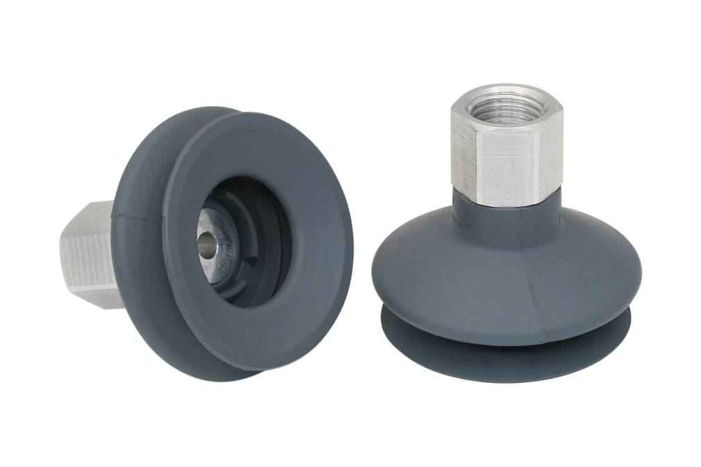 - Круглая, сильфонная присоска с 1,5 гофра для перемещения чрезвычайно чувствительных заготовок (оптимальный демпфирующий эффект благодаря гофру и гладкой уплотнительной кромке)