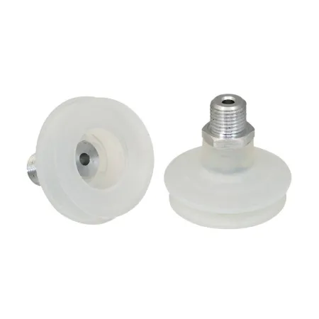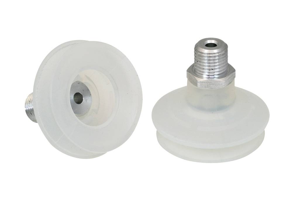- Круглая, сильфонная присоска с 1,5 гофра для перемещения чрезвычайно чувствительных заготовок (оптимальный демпфирующий эффект благодаря гофру и гладкой уплотнительной кромке)