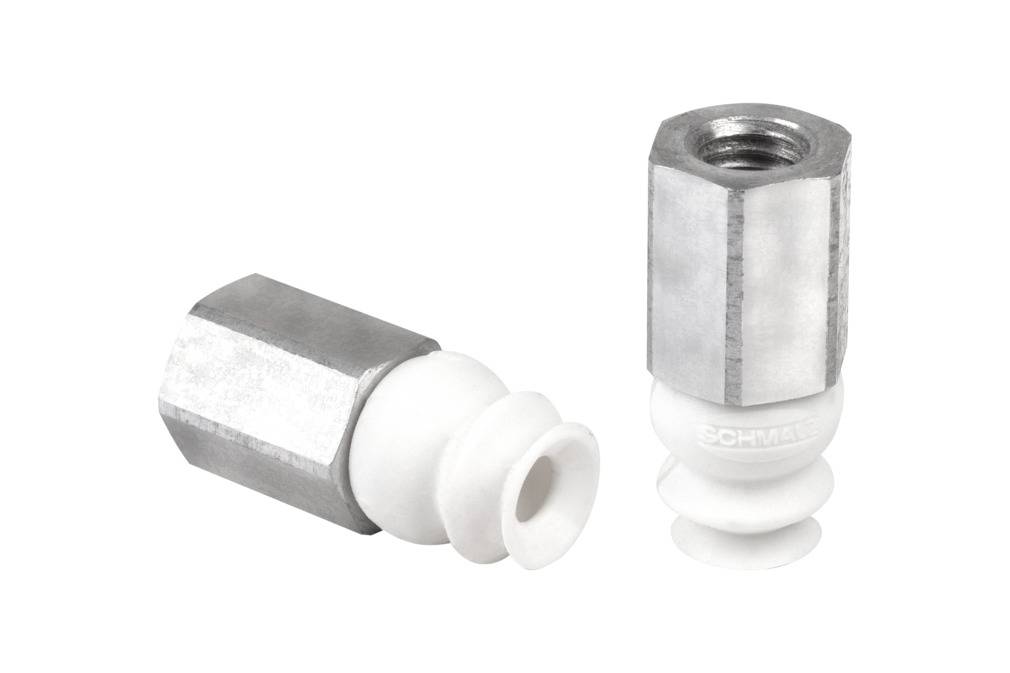 - Круглая сильфонная присоска с 1,5 гофра, регулировкой высоты и демпфирующим эффектом для перемещения хрупких заготовок