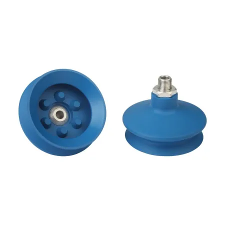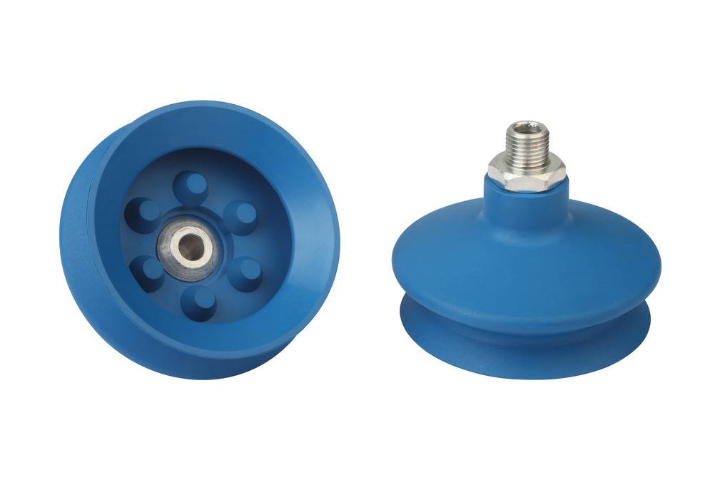 - Круглая, сильфонная присоска с 1,5 гофра для перемещения чрезвычайно чувствительных заготовок (оптимальный демпфирующий эффект благодаря гофру и гладкой уплотнительной кромке)