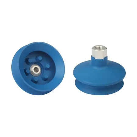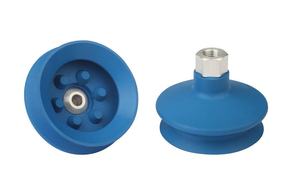 - Круглая, сильфонная присоска с 1,5 гофра для перемещения чрезвычайно чувствительных заготовок (оптимальный демпфирующий эффект благодаря гофру и гладкой уплотнительной кромке)