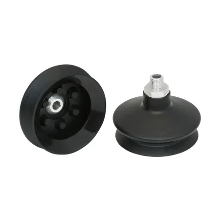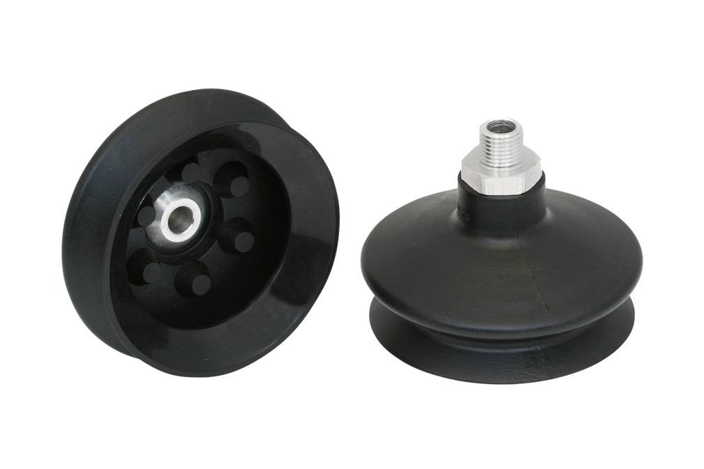 - Круглая, сильфонная присоска с 1,5 гофра для перемещения чрезвычайно чувствительных заготовок (оптимальный демпфирующий эффект благодаря гофру и гладкой уплотнительной кромке)