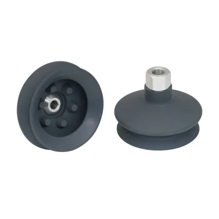 - Круглая, сильфонная присоска с 1,5 гофра для перемещения чрезвычайно чувствительных заготовок (оптимальный демпфирующий эффект благодаря гофру и гладкой уплотнительной кромке)