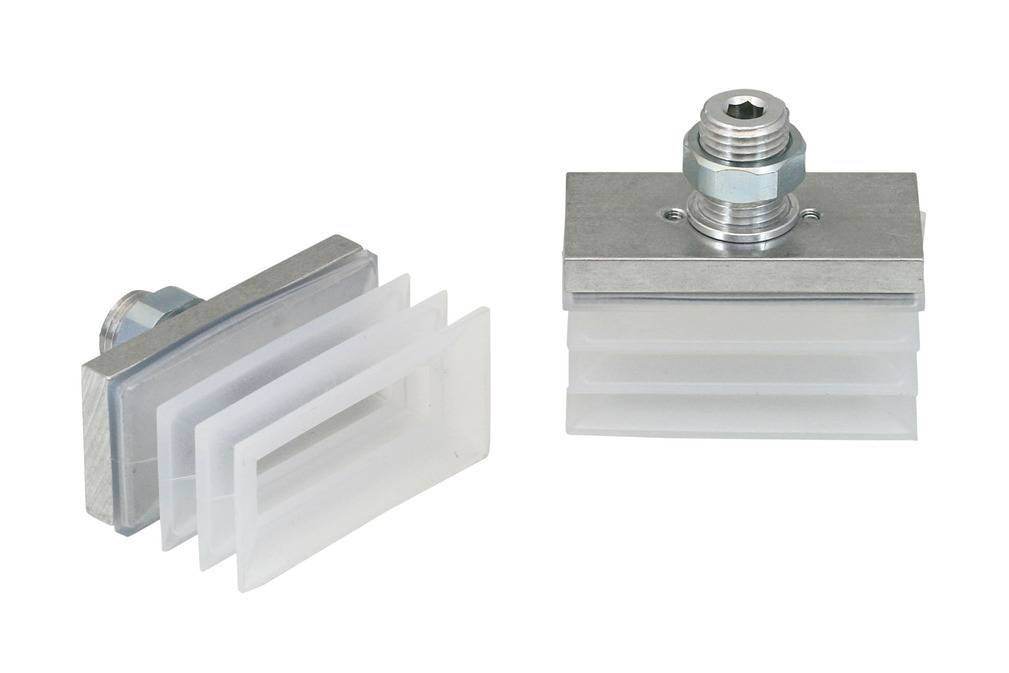 - Прямоугольные сильфонные присоски с 2,5 или 3,5 гофра для перемещения прямоугольных упаковочных материалов с неровными поверхностями