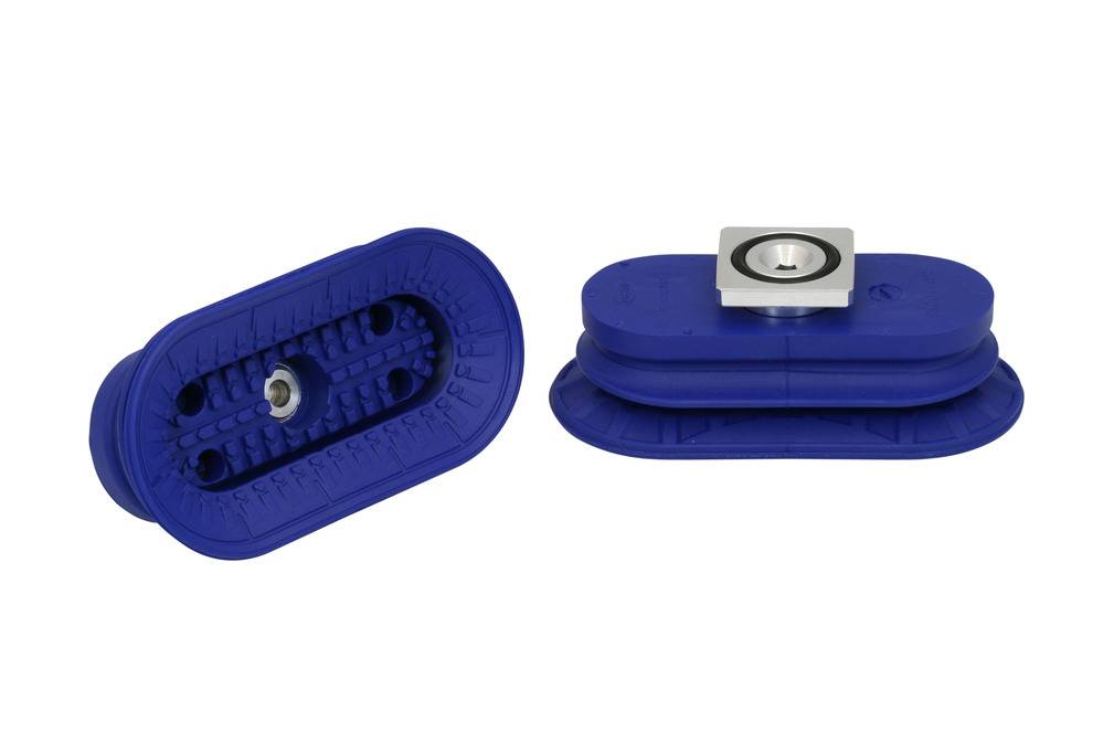 - Овальная сильфонная присоска с 1,5 гофра для динамического перемещения длинных, узких заготовок, например, усиливающих ребер и пластин