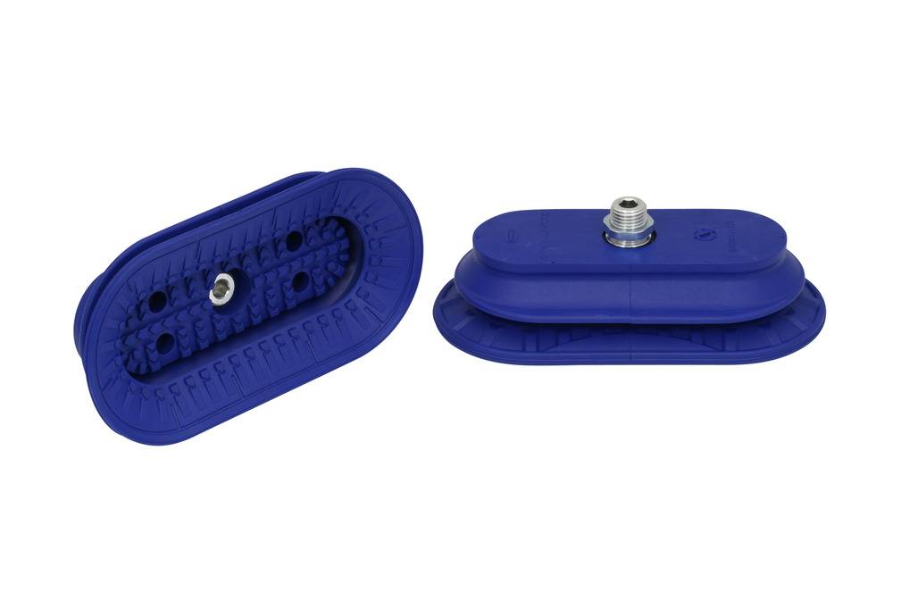 - Овальная сильфонная присоска с 1,5 гофра для динамического перемещения длинных, узких заготовок, например, усиливающих ребер и пластин