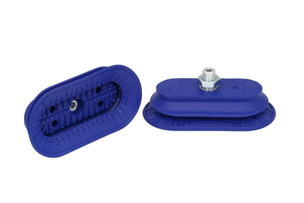 - Овальная сильфонная присоска с 1,5 гофра для динамического перемещения длинных, узких заготовок, например, усиливающих ребер и пластин