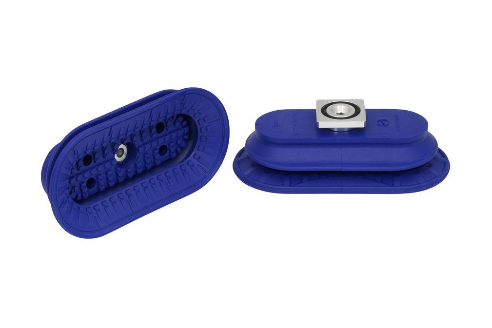 - Овальная сильфонная присоска с 1,5 гофра для динамического перемещения длинных, узких заготовок, например, усиливающих ребер и пластин