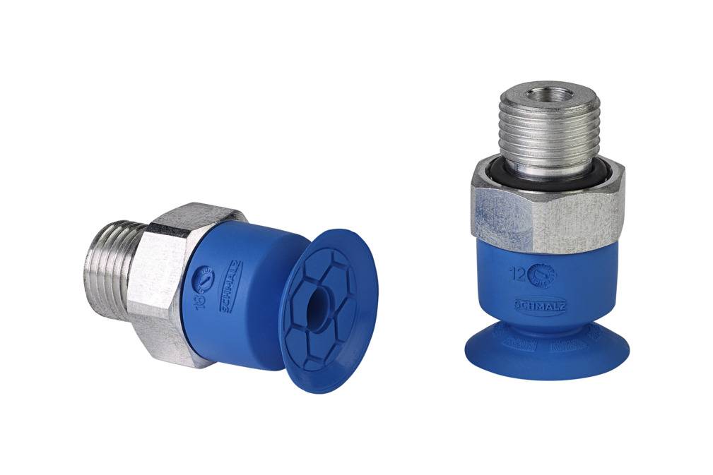 - Suction cup with thin and flexible sealing lip consisting of flat suction cup SFF (1) or bellows suction cup SFB1 with 1.5 folds (2) and Schmalz connecting element SC (3)