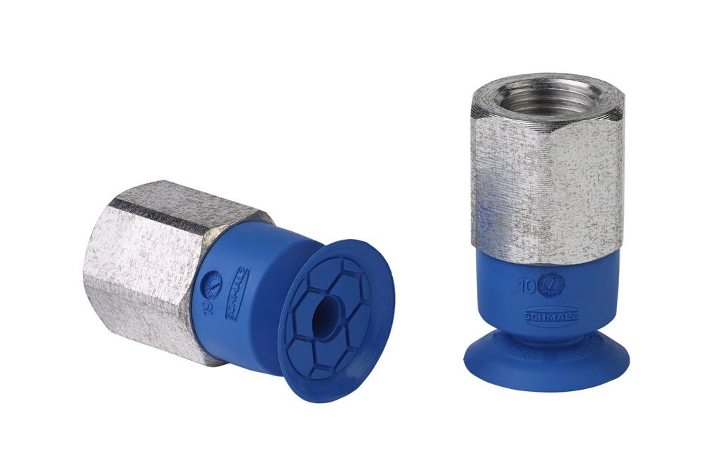 - Suction cup with thin and flexible sealing lip consisting of flat suction cup SFF (1) or bellows suction cup SFB1 with 1.5 folds (2) and Schmalz connecting element SC (3)