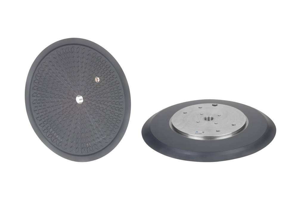 - Присоски для перемещения плоских и гладких заготовок, таких как листы стекла и пластика, где важны большие поперечные силы, например, посредством высоких ускорений или вертикального перемещения