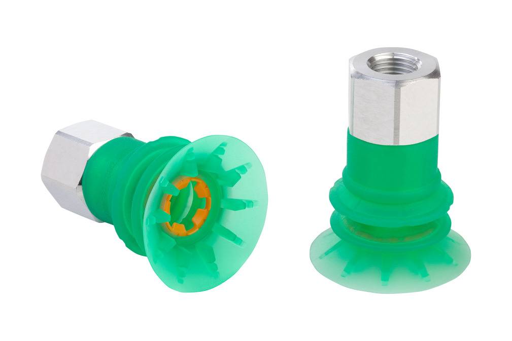 - Сильфонная присоска SPB2f с 2,5 гофра (3) и мягкой и гибкой уплотнительной кромкой с сегментными лопастями потока и встроенным стабилизатором мешков