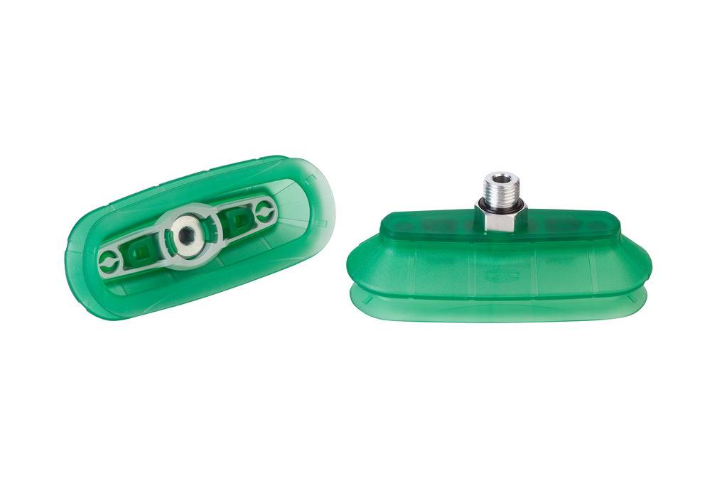 - Овальная, сильфонная присоска с 1,5 гофра для использования в устройствах формирования картонных коробок и лотков