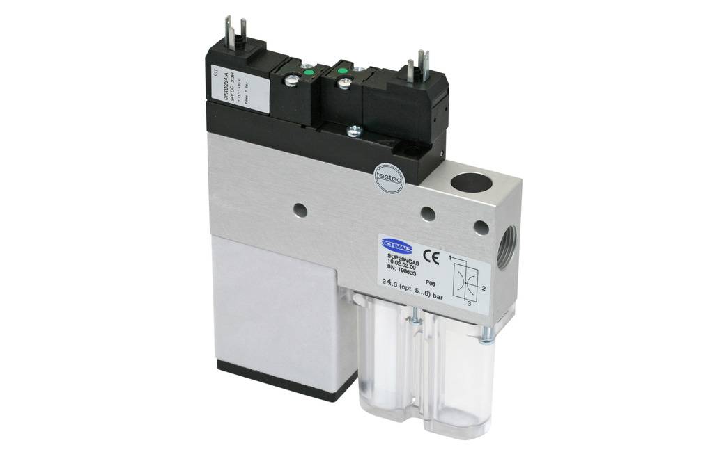 - Клапан спуска воздуха NC (8), фильтр (3), глушитель (8) и невозвратный клапан - все встроены